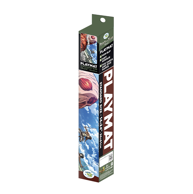 Jouez vos cartes, lancez vos dés et profitez de votre jeu ! Améliorez votre expérience de jeu avec ces tapis de jeu officiels de taille standard et recouverts d’un tissu de qualité supérieure. Transportez-les facilement partout et devenez un véritable membre du Survey Corps !