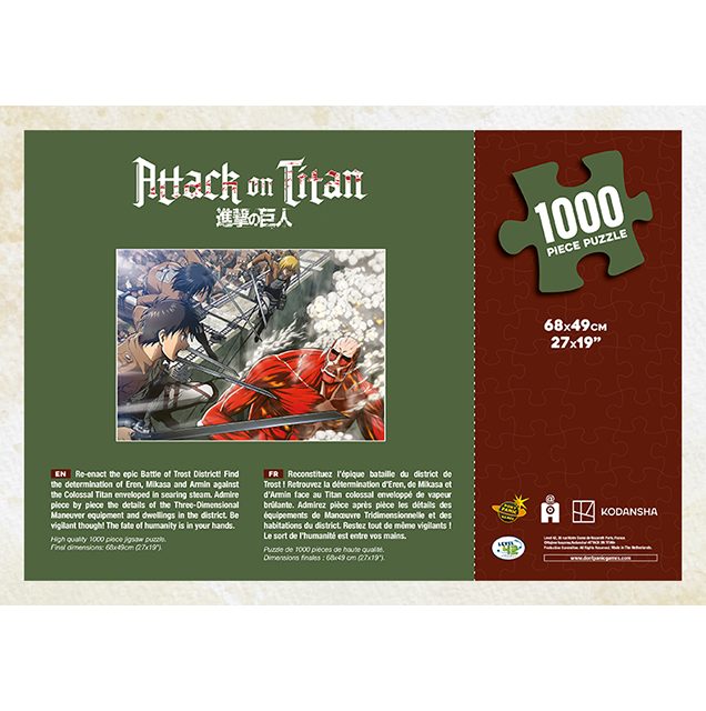Rejouez la bataille épique du district de Trost ! Retrouvez la détermination d’Eren, Mikasa et Armin face au Titan colossal enveloppé de vapeur brûlante. Admirez pièce par pièce les détails de l’équipement de manœuvre tridimensionnel et des habitations du district. Mais soyez vigilants ! Le sort de l’humanité est entre vos mains.