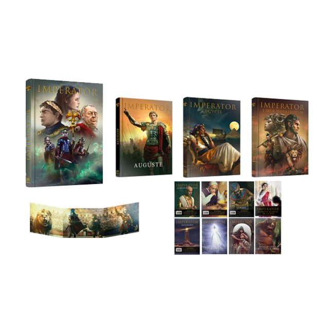 Cette belle boîte rigide contient tout ce qu’il faut pour débuter à IMPERATOR, le JDR de la rome antique : le livre de règles, les suppléments Auguste, Egypte, le Bestiaire, l’écran rigide, La route de la soie, les scénarios La couronne de Tarquin, Veni vidi vixi, Sur la route de l’ambre, Alexandrie, Machinations, La momie, Le retour de Khufu, les fiches de monstres et des fiches de personnage.