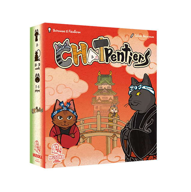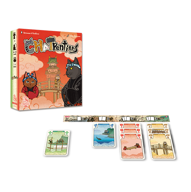 Chatpentiers est un jeu de cartes pour 3 à 5 joueurs, où vous incarnez des chats charpentiers à l’époque Edo au Japon !