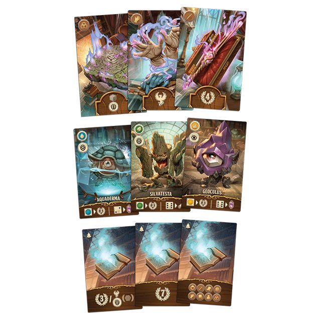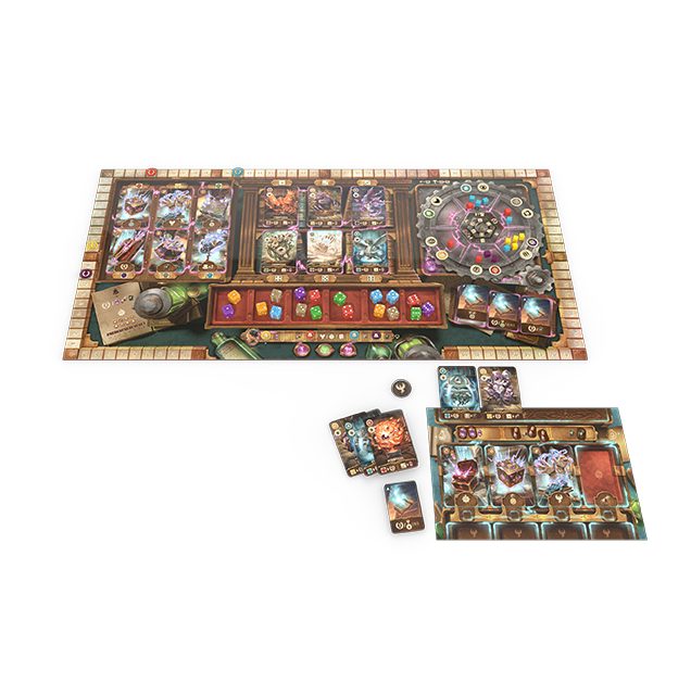 - « Engine Building » & Optimisation : Développez un système unique dans votre Laboratoire. Utilisez des gemmes et des parchemins pour manipuler vos dés, enchaîner les combos et optimiser chaque tour.