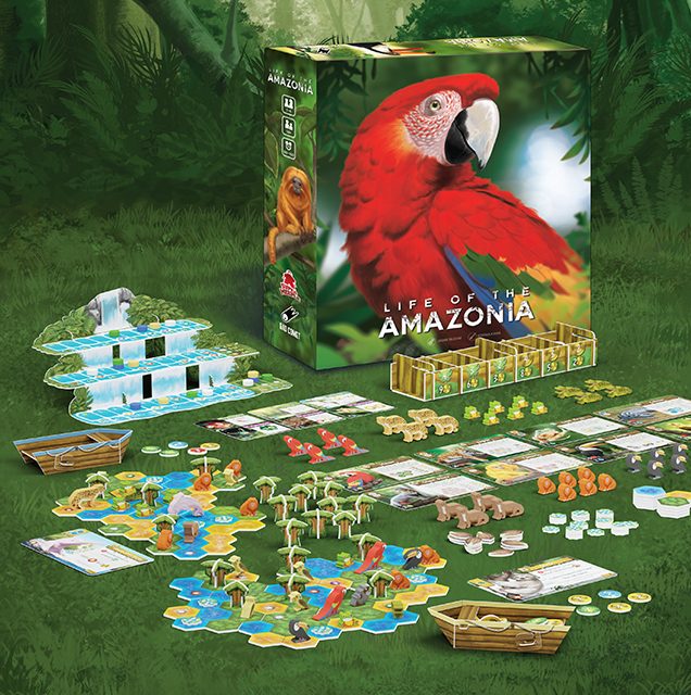 Construisez votre propre jungle prospère en découvrant divers animaux sauvages, insectes et plantes dans ce magnifique jeu de plateau. Life of the Amazonia est un jeu stratégique de placement de meeple qui combine le bag building et le placement de pièces. Les joueurs devront restaurer des terres, placer divers animaux et planter des arbres et des fleurs pour enrichir leurs jungles et créer la jungle la plus écologiquement riche. Les différentes vies doivent être placées dans la jungle en tenant compte de chaque caractéristique unique des plantes et des animaux afin de créer des synergies entre eux. Pour mener à bien ces actions, il est crucial de construire des sacs qui correspondent à la stratégie du joueur. Avec plus de 60 000 façons différentes de placer les cartes animaux et diverses options stratégiques, chaque partie de Life of Amazonia sera différente de la précédente.