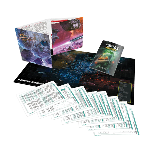 Le kit de jeu Star Trek Adventures constitue une extension du livre de base. Il comprend une foule d’options supplémentaires à destination des joueurs et des meneurs de jeu. Vous y trouverez aussi des documents de référence qui vous aideront à explorer les frontières de l’infini.
