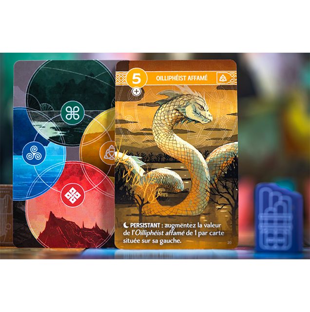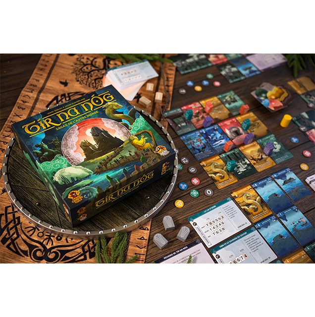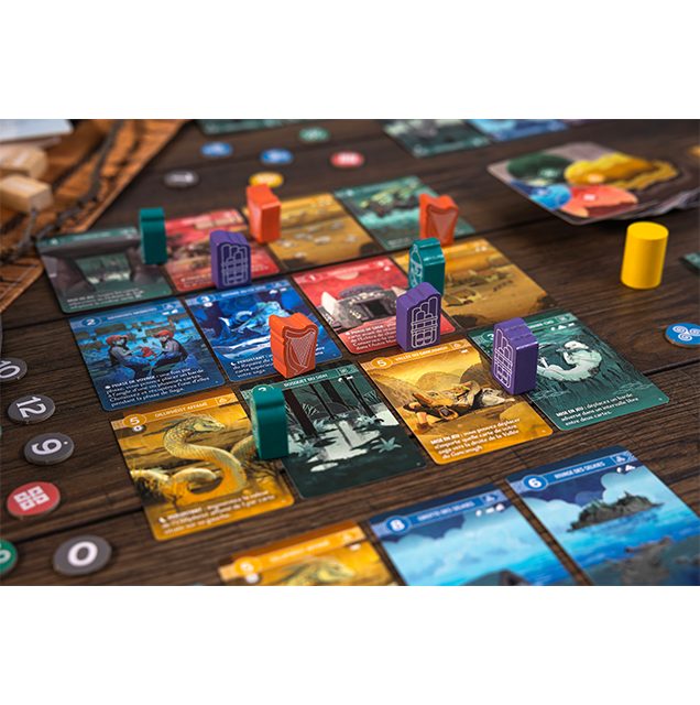 Placez vos bardes entre les cartes d’histoires dans une grille partagée. Lorsque tous sont placés, dans l’ordre inverse du tour, “draftez” les cartes. Depuis votre main, jouez-les sur votre tableau personnel. En fin de partie, marquez vos points dans chaque saga et suivant les cartes de même couleur connectées ! Interactions, réflexions et décisions permanentes.