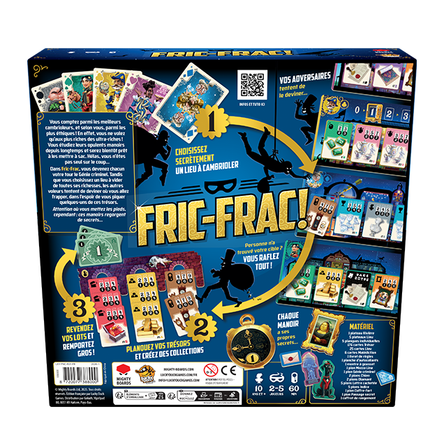 Ambiance, retournement de situations et fou-rires à chacune de vos parties de Fric Frac! Et puis retournez les plateaux et découvrez de nouvelles options de jeu !