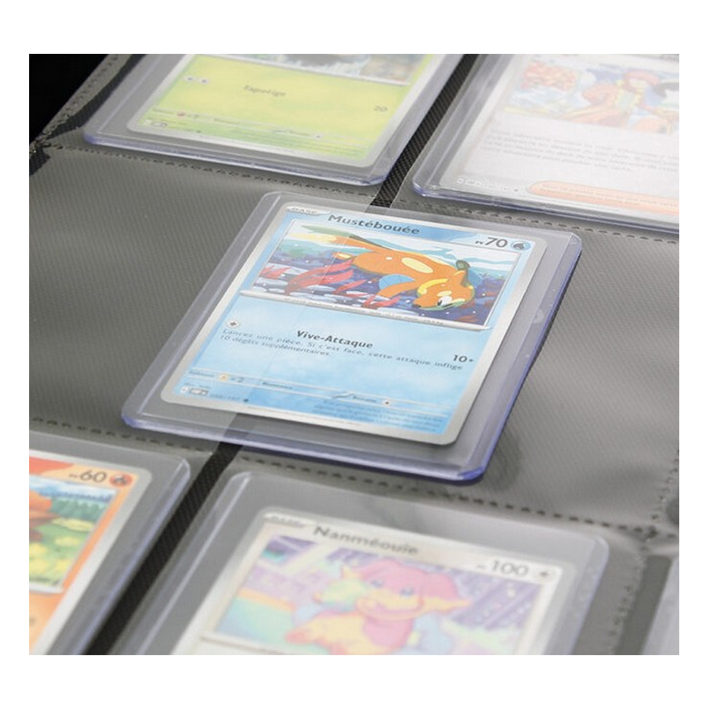 - Grande capacité de rangement : 20 pages contenant chacune 9 pochettes à ouverture latérale, permettant de protéger un total de 360 cartes dans leurs toploaders.