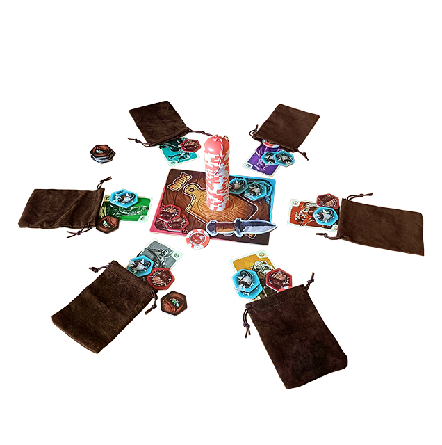 - 1 plateau de jeu, 27 jetons de jeu (6 Coup de poing, 12 Bruit, 8 Regard noir, 1 Couteau)