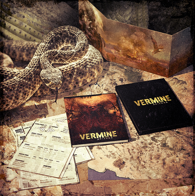 Arizona présente un cadre de campagne américain écrit par Benoît Attinost pour Vermine 2047. Le livre contient une description de la région, des communautés et PNJ importants, un bestiaire et un scénario. L’édition Horde contient 1 carte A1 recto-verso de l’Arizona, un écran avec une illustration inédite, des fiches de personnages prétirés et une aide de jeu pour le scénario, le tout dans un étui.